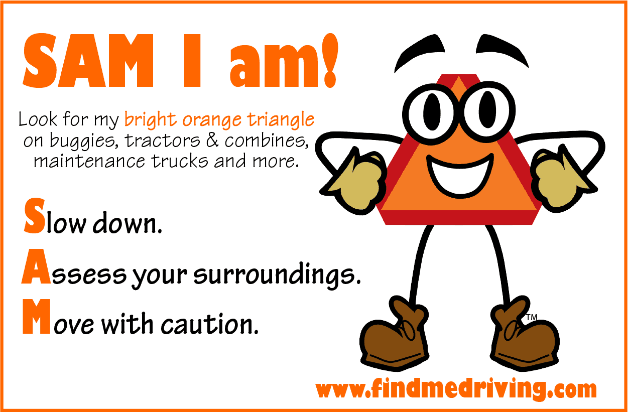 With more than 90 entries coming in from across the country, Marylander Natalie Grasso came up with the winning name for the www.FindMeDriving.com character naming contest. “SAM” is the face of the new road safety campaign initiated by the Maryland Soybean Board (MSB). Research funded by the Board showed that driver education on how to drive near slow moving vehicles (SMV), such as combines, tractors, buggies and wagons, could help decrease accidents on roads.