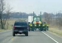 Many SMV’s are naturally wide, particularly tractor equipment and combines. If the vehicle is extra-wide, wait to pass until the driver pulls over and signals that it’s safe. Look for upcoming railways or mailboxes and know the SMV may swing wide, sometimes even into the adjacent lane, to avoid obstacles.